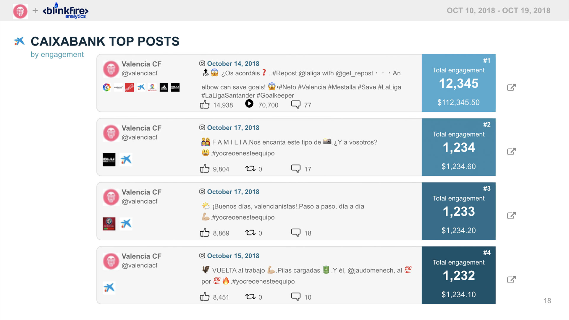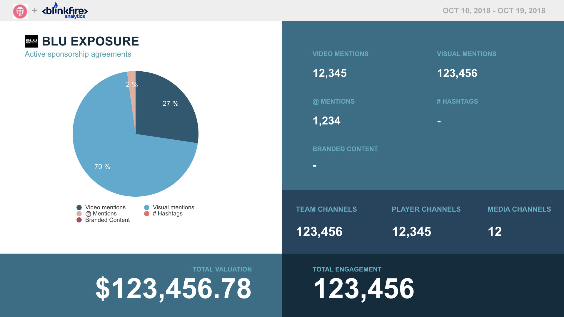 Blinkfire’s “always on” reports are available in near real-time based on the date range of your choice. Reports are exportable by PDF, XLSX, and PPTX, or schedule and send unlimited reports to anyone's inbox, instantly.