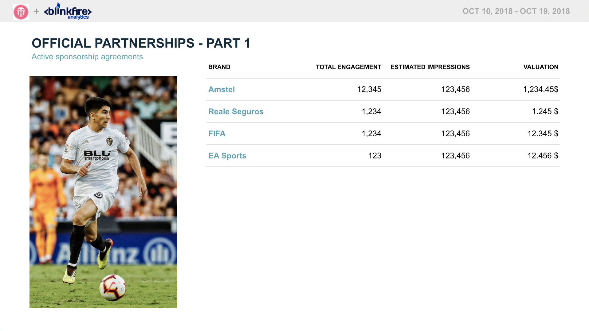 Arm your sponsorship team with reports about the performance of each sponsor from your social media channels and social streams. Demonstrate the reach of digital properties and monetize the value earned in social media.